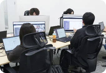出社後に前日の実績を確認し、レポートを作成します。ミーティングで改善点・方針を共有し、落ち着いたタイミングで各自お昼休憩を取ります。